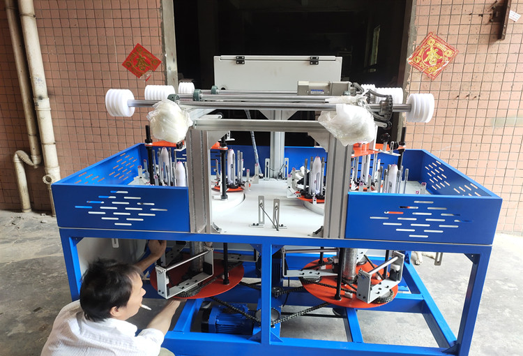 產(chǎn)品介紹:本機(jī)器全稱多功能全自動(dòng)三股繩一體機(jī),是萬(wàn)氏公司研發(fā)的用于編制多種用途三股繩的機(jī)器。機(jī)器整體采用自動(dòng)化控制系統(tǒng),可通過(guò)觸摸屏自主調(diào)節(jié)繞絲數(shù)量、成品繩松緊度以及繞絲間距,以滿足客戶產(chǎn)品的不同需求。機(jī)器采用一健啟動(dòng)功能,操作簡(jiǎn)便高效。相比與傳統(tǒng)三股繩一體機(jī),本機(jī)器可節(jié)約人工成本50%左右,減少場(chǎng)地占地面積40%左右,噪音更低,機(jī)器性能更加穩(wěn)定。一臺(tái)機(jī)器每分鐘可生產(chǎn)產(chǎn)品繩7米以上,極大程度的提升了生產(chǎn)效能,為織帶行業(yè)助力。